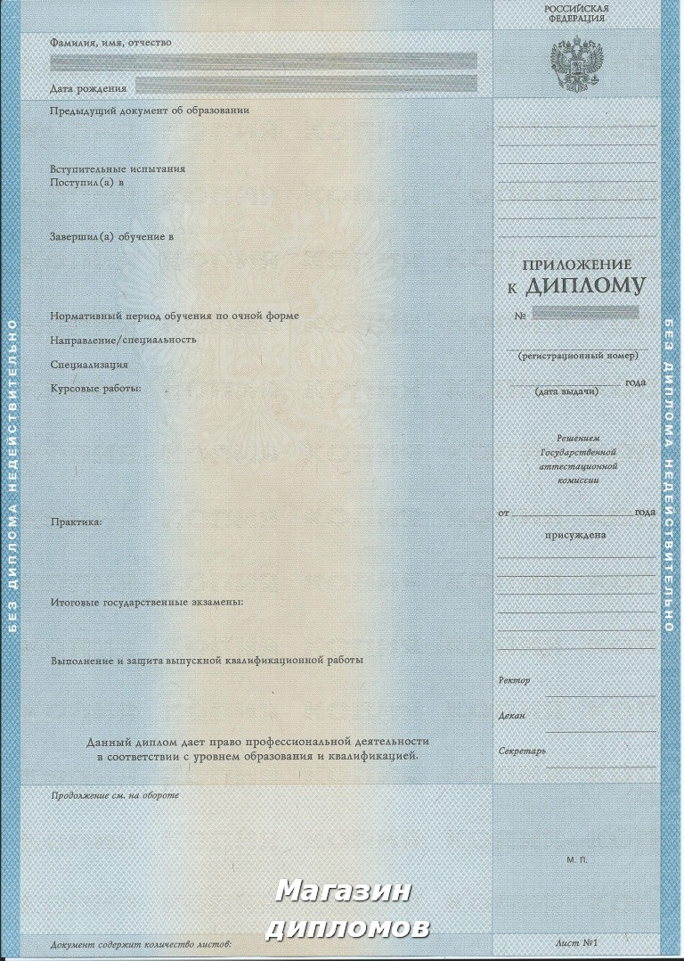 Диплом ВУЗа Российской Федерации, выдавался с 2004 года по 2008 год.